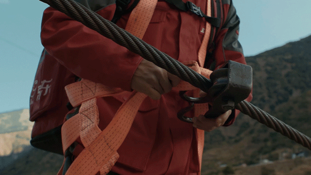 我们知道了有一个每天都要通过滑索飞跃怒江的快递员,他的名字叫朱坤陶。